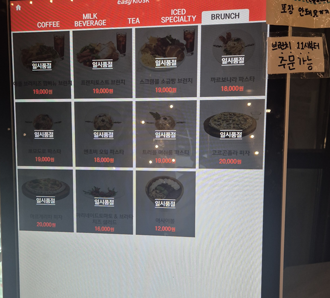 늦은 시간에 도착해 베이커리도 이미 많이 팔렸고, 브런치도 먹지 못 했습니다. 늦게 도착한 것이 조금 아쉽더라고요.ㅠㅠ