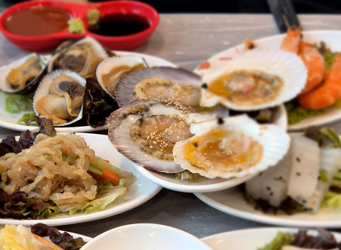 활전복과 가리비뿐만 아니라 다양한 해물들이 4인에 맞게 개수가 나옵니다.ㅎㅎㅎ