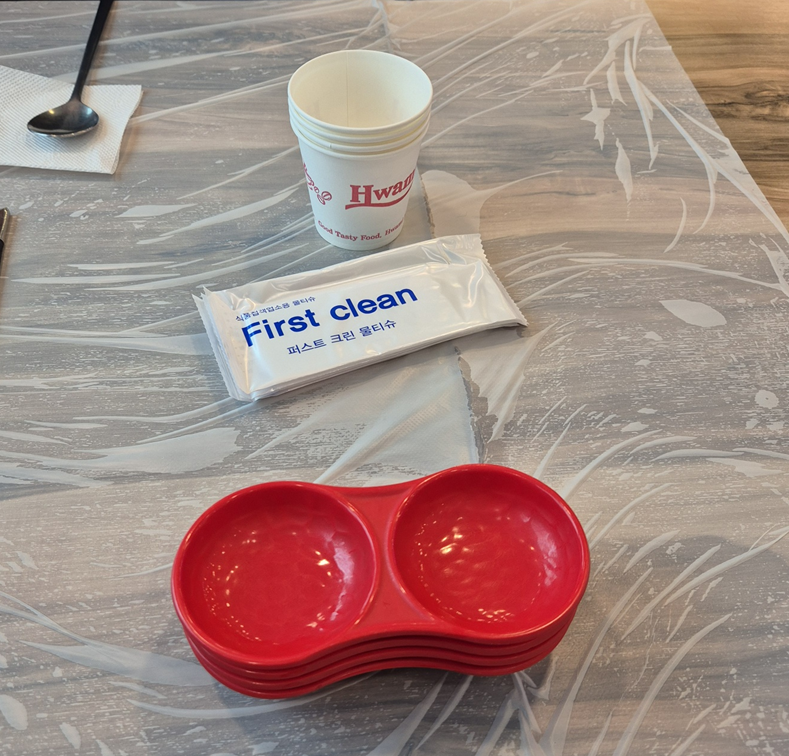 가자마자 종이컵과 물티슈, 종지를 주십니다.ㅎㅎ 물은 먼저 주지 않으세요.ㅎㅎ 한상 차림이 많다보니 물을 먼저 주지 않으신다고 해요.ㅎㅎ 정 급하면 정수기를 이용하시면 됩니다.ㅎㅎ