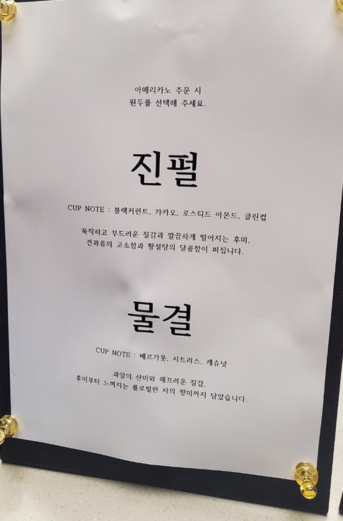 공간은 넓고 자리는 많지만 주로 원하는 자리를 앉으려 해서인지 살짝은 어수선하기도 하고, 대화의 흐름이 끊기는 경우가 종종 있었어요. 드라이브하다가 잠시 들려 커피 마시고 가는 경우라면 괜찮지만 오랜 시간을 머물 계획이시라면 자리가 적합하지 않을 것 같단 생각이 많이 들었어요.ㅠㅠ 등받이 의자가 있는 테이블에 자리를 잡으신다면 괜찮습니다! ㅎㅎ 무엇보다 주차 공간이 넓어서 정말 좋았어요.ㅎㅎ 거의 운동장만 한 주차 공간이 있더군요.ㅎㅎ 참, 주문하실 때 주차 번호를 말씀하시면 주차 이용 시간 정산을 해 주시니 나가시가 전이라도 꼭 말씀하고 나가세요~
