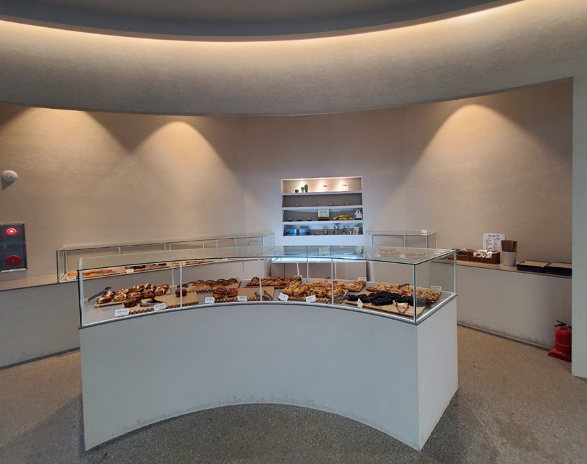 입구에 들어서면 카운터와 오른쪽에 베이커리류가 있어요!