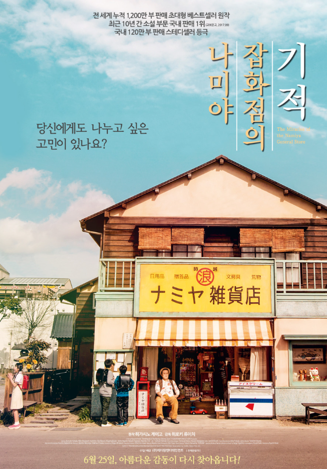 히가시노 게이고의 장편 소설인 <나미야 잡화점의 기적>이 원작인 영화다. 이미 500만부 이상의 판매량을 보이는 베스트셀러 작품이었고, 한국에서도 책꽂이에서 쉽게 발견할 수 있던 책이다.