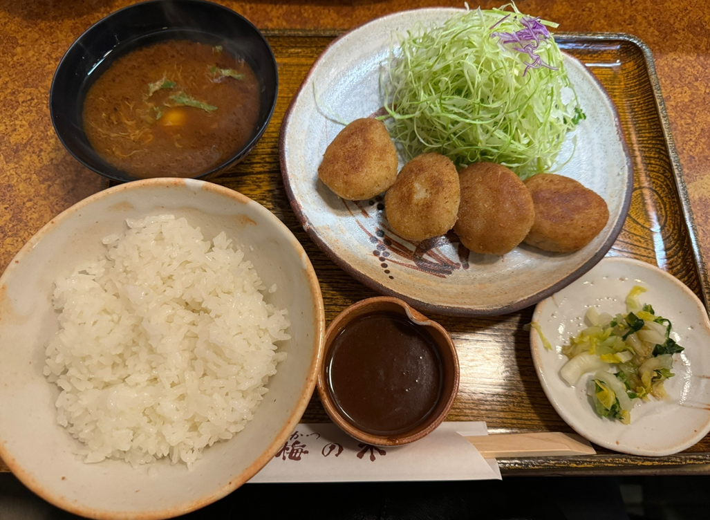 미소까스 정식은 1,200엔으로 너겟 같이 생긴 작은 돈까스 4조각, 양배추, 절인 배추, 미소국, 밥이 나옵니다. ㅎㅎ 메뉴판에 곱빼기는 돈까스 6조각이 나오는데 300엔이 추가됩니다. 처음 봤을 때 양이 생각보다 적어서 곱빼기를 주문하는 게 나았을 거 같더라고요!