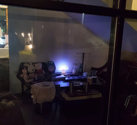 어둑한 밤 하늘과 반대되는 조명이 가득한 카페였습니다. ㅎㅎ 조명들이 많아서 그냥 아무 이유 없이 아련해지더군요..ㅎㅎ 감성에 빠져버렸네요.ㅎㅎ