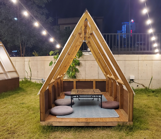 카페 내부를 열심히 구경하고, 저희가 자리 잡을 외부로 나갔습니다.ㅎㅎ 너무 귀여운 공간이죠?ㅎㅎ 오두막 같은 자리의 앞에 있는 둥근 것들이 불을 피울 수 있는 위치입니다. ㅎㅎㅎ 다음에 시간을 내서 꼭 불멍을 하러 오고 싶네요!!ㅠㅠ
