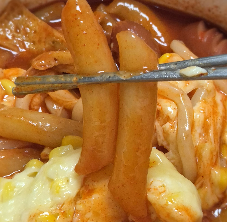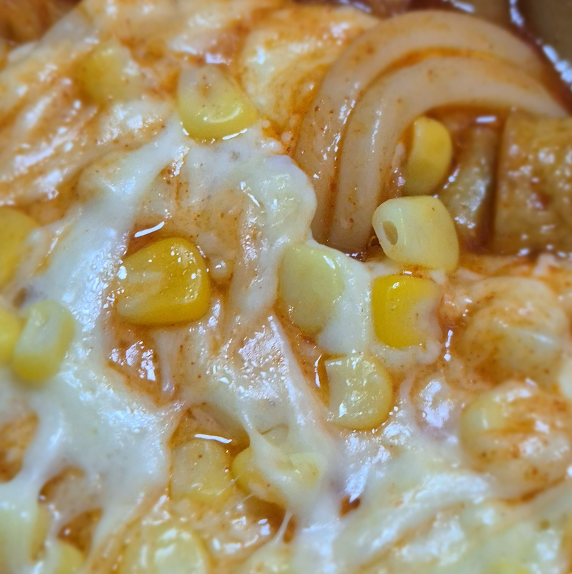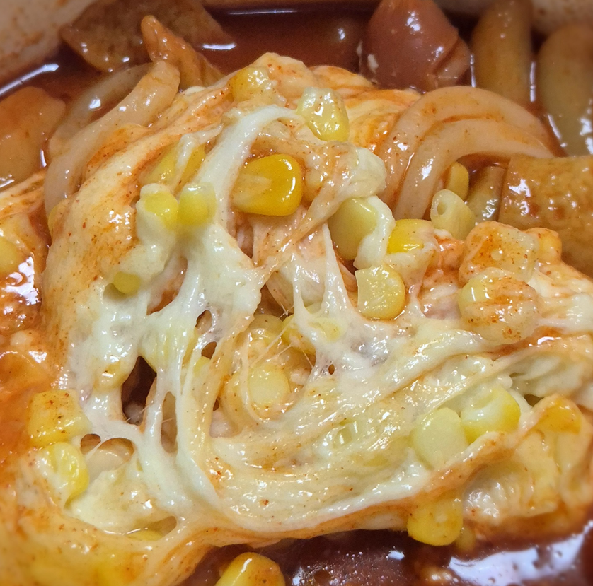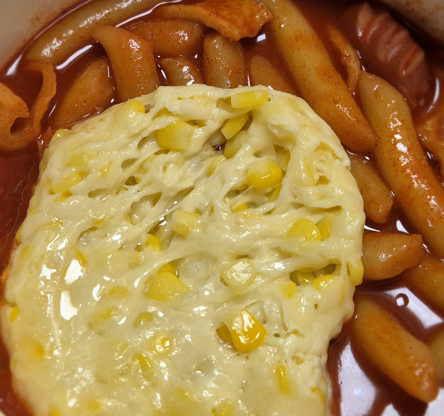 떡볶이도 빠질 수 없죠.ㅎㅎ 사실 이번 떡볶이에서의 떡은 바지 사장 같은 느낌이라고 할 수 있었습니다.ㅎㅎ 이름은 떡볶이이지만 실세는 우동면과 치즈였어요.ㅎㅎ 그만큼 떡볶이 소스가 벤 우동사리가 너무 맛있었고 기본 치즈가 아닌 콘치즈 덕분이 500원 이상의 행복함을 먹었습니다. ㅎㅎㅎㅎ