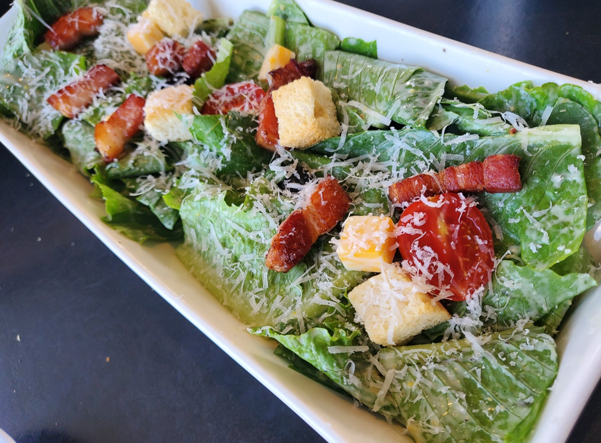 저는 둘이 갔는데 많이 먹자!! 하는 마음으로 네 가지 메뉴를 주문했어요.ㅎㅎ 먼저 샐러드에서는 로메인 시저를 주문했고요.