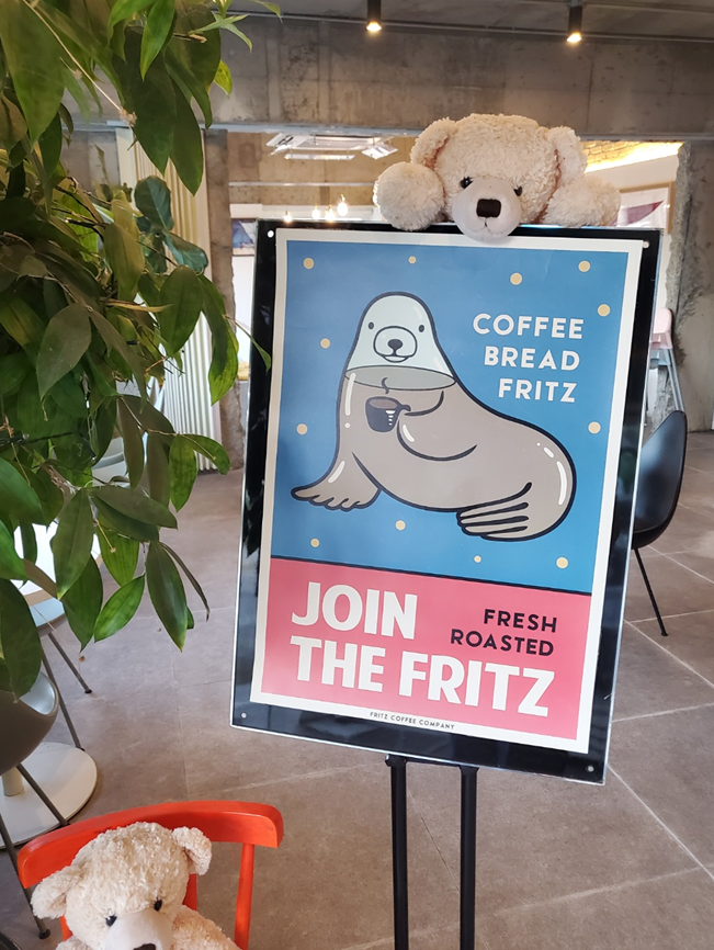 매장을 들어가면 바로 프릳츠 커피 포스터가 있는데, 제가 예전에 다니던 회사에서 프릳츠와 계약을 맺어 제공을 받았었는데 그때가 생각나더라고요, 저희 팀장님이 식사는 안 해도 꼭 커피를 드시는 분이었는데 그 때 팀장님의 입맛으로 계약이 성사되었던 곳이라 저도 맛있게 즐겼던 기억이 있습니다.ㅎㅎ 기와 카페는 프릳츠 커피를 사용하고 있었어요.ㅎㅎ