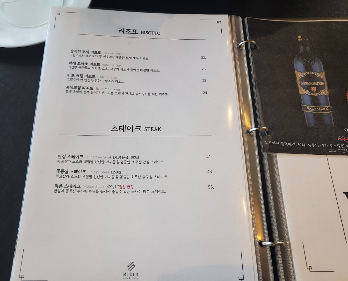 킹 타이거 오일 & 크림 파스타가 신메뉴로 추천해주셨는데, 저는 리조또를 먹고 싶어서 포기했어요,,ㅠ 다음에 또 와서 먹어보면 되니깐요..ㅎㅎ