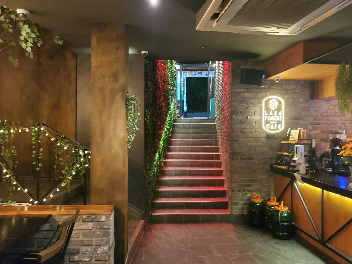 이렇게 입구에서 내려오시면 바로 왼쪽에 카운터가 있고, 오른쪽에는 복층 같은 자리가 있습니다.