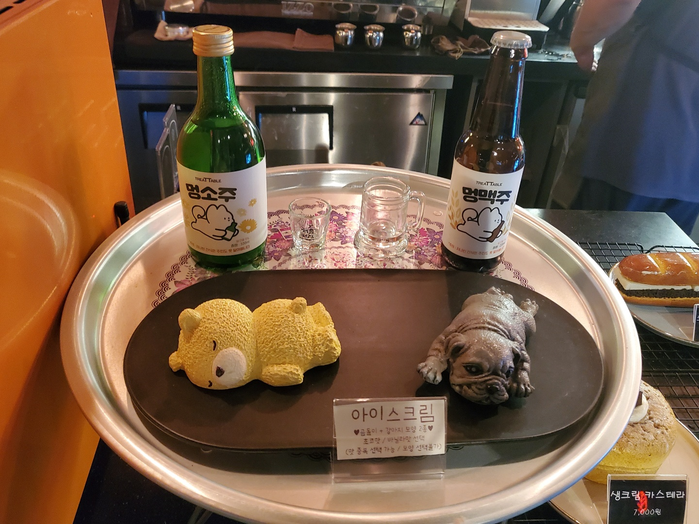 강아지와 동반 입장이 가능하기 때문에 강아지들을 위한 메뉴도 있었어요.ㅎㅎ SNS에서만 봤는데 멍맥주, 멍소주가 여기 있네요.ㅎㅎ 저 귀여운 아이스크림들은 어찌 먹을 수 있죠?(라고 말하지만 말 떨어지기 전에 무섭게 사라질 거예요..)