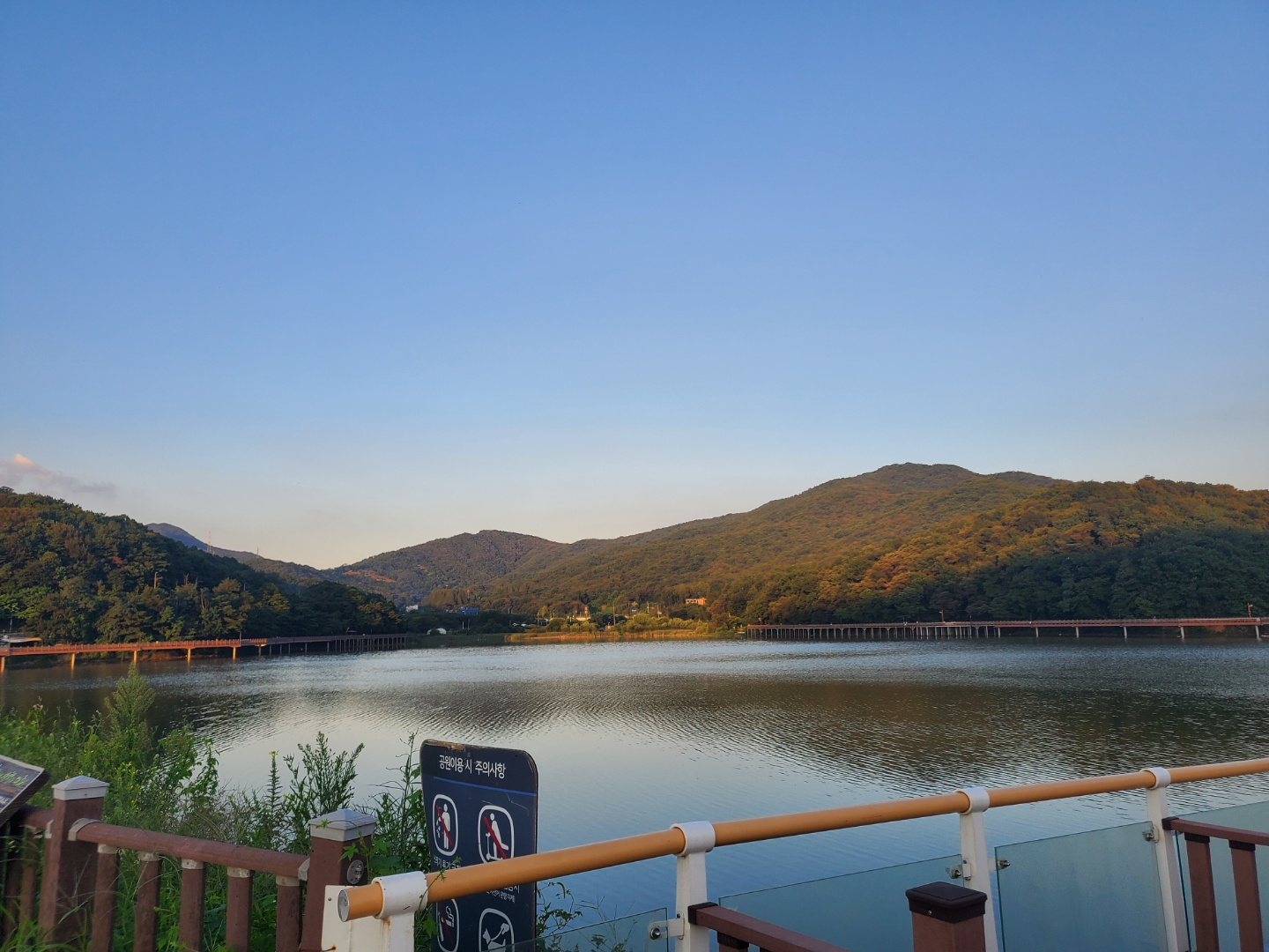 처음엔 저수지였다가 호수로 되었다는 백운호수라고 들었는데요, 주변에 산으로 둘러 싸여 있어서 공기부터 달랐습니다. 고즈넉하니 분위기도 잔잔했고, 모든 것이 평화로워보이는 순간이었어요.ㅎㅎ 오직 걷고자 하시는 분들을 위해서 자전거나 킥보드는 진입이 불가했어요. 요즘 킥보드로 정말 사고도 많고 저도 산책을 방해받는 경우가 잦았는데, 호수를 걷는 동안 편안함을 느꼈던 또 하나의 요인이었던 듯싶네요.ㅎㅎ