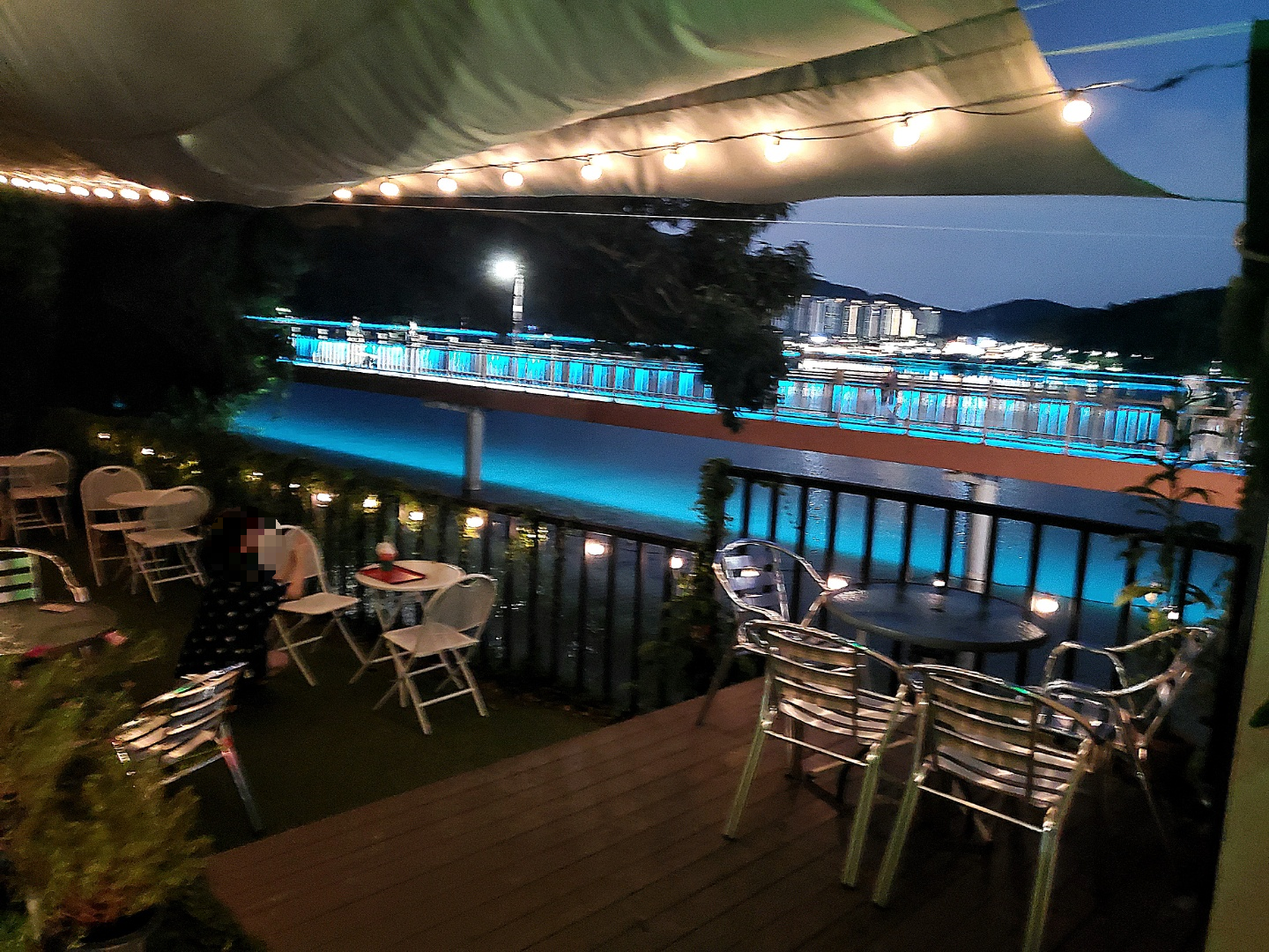 제가 앉은 테이블 쪽에서 바라본 호수 풍경입니다.ㅎㅎㅎ 평화롭죠?ㅎㅎㅎ 보니까 시민경찰 같은 분들이 순찰도 돌고 계셔서 정말 안전에 힘쓰는 호수 같아 보였어요.ㅎㅎㅎ 가로등에 비쳐 낮에는 잘 안 보이던 물고기들도 보였어요.ㅎㅎ 이런 뷰를 보면서 일하시는 사장님이 너무 부럽네요.. 힘들다가도 풍경을 보면서 힐링하실 거 같다는 생각이!!ㅎㅎㅎ