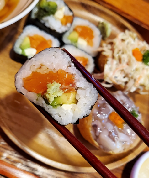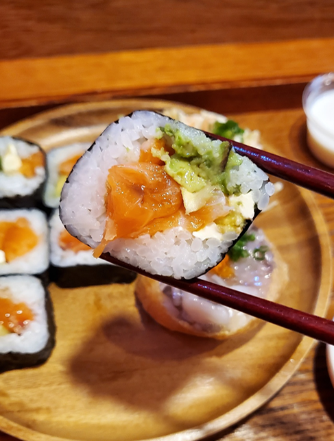 색이 너무 예쁘지 않나요?ㅎㅎ 연어 살이 두툼하게 들어가 있고, 아보카도와 크림치즈와 함께 어우러져 있습니다. ㅎㅎ 아보카도도 적당히 잘 익어서 아보카도의 향과 맛을 잘 느낄 수 있었어요! 함께 나온 고추냉이도 함께 곁들여 먹었어요.ㅎㅎ 개인적으로 고추냉이를 좋아해서 함께 먹는 것이 저에겐 더 호! 였습니다. ㅎㅎ