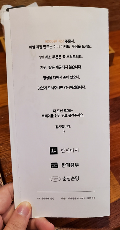 기대하고 기대하던 푸딩입니다! 와 이거 정말 맛있더라고요! 입이 살짝 짜게 남을 수 있었는데, 입가심 용으로 아주 좋은 디저트였습니다. 너무 달지도 않고 우유맛이 강하면서, 푸딩의 텍스쳐도 부드럽고 무엇 하나 걸리는 것 없이 입 안에서 녹아내렸습니다. ㅎㅎ 유부나 마끼도 맛있었지만.. 이거 먹으러 또 오고 싶었어요..ㅎㅎ 우동 그릇 사이즈로 하나 먹고 싶다는 생각도 했고요..ㅎㅎ 찰랑거리는 흔들림 보이시나용..ㅎㅎ