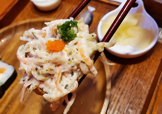 부드러운 크래미 마요가 올라간 유부도 강할 수 있는 크래미 토핑이 밥이 잡아줘 조화를 잘 이루고 있었어요. ㅎㅎ 맛있어서 정신없이 먹었더니 접시가 금방 비었어요.ㅎㅎ