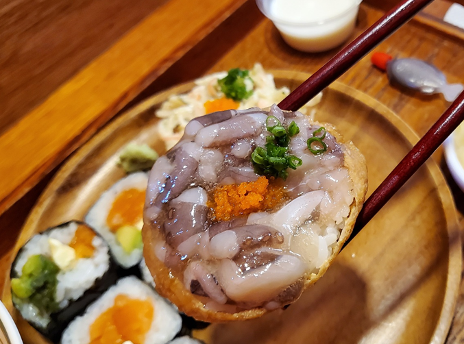 타코와사비 유부에도 적절히 간이 되어 있었고, 너무 강하지도 않고, 너무 약하지도 않은 강도여서 저에겐 딱이었습니다. ㅎㅎ 날치알과 타코의 식감도 한 몫해주었어요!