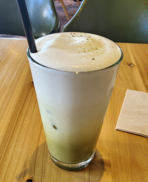 열심히 음료 자랑을 하고 잘 섞어서 줍니다. ㅎㅎ 한참을 저어야 섞이더라고요.ㅎㅎ 저는 그냥 성격 급하게 섞다 말고 마셔버렸어요..ㅎㅎ 빨리 마시고 싶었거든요..ㅎㅎ 주로 커피를 못 마실 경우에 그린티 종류를 자주 마시곤 해요.ㅎㅎ 종종 너무 단 경우도 많고, 그냥 시중에 파는 파우더 맛이 강한 경우도 많고 제 각각인 맛인데 이곳의 도쿄그린티를 좋아하는 이유는 부드럽고, 너무 달지 않은 맛이 저에겐 맞더라고요.ㅎㅎ 그래서 다른 곳들과는 조금은 다른 레시피를 사용하셨을 거 같단 생각이 들어 이 곳 그린티를 좋아해요.ㅎㅎ 일반적인 그린티라떼 보다는 고급스럽단 느낌일까요?ㅎ