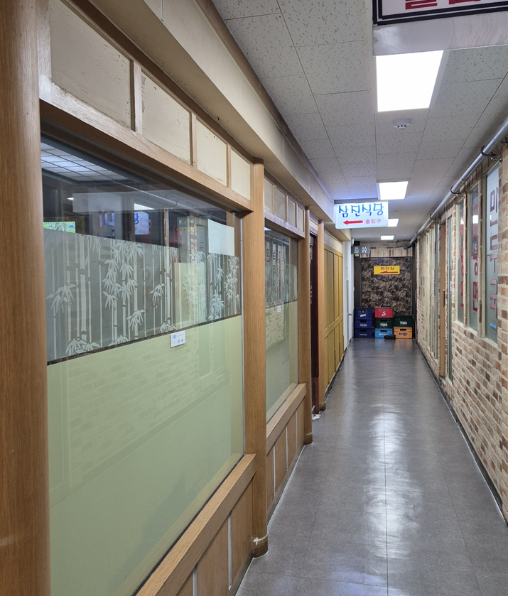 이런 곳에 식당이 있어..? 할 복도가 나오는데 삼진식당 간판이 있는 곳까지 가면 입구가 나옵니다.ㅎㅎ