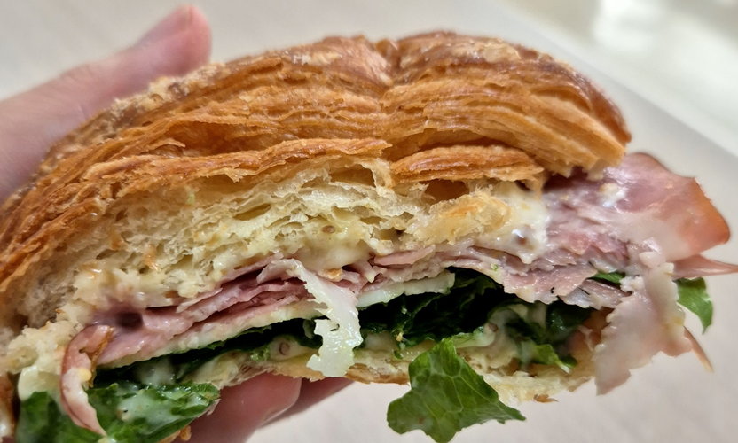 저는 잠봉 샌드위치를 사 왔습니다. ㅎㅎ 바삭한 크로와상에 로메인, 치즈, 잠봉이 가지런히 샌드 되어 있습니다.ㅎㅎ 크기도 꽤나 큽니다.ㅎ 성인 남자 손 크기 정도 될 것 같아요!
