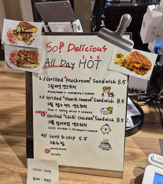 커피나 다른 음료는 마셔 봤는데 샌드위치는 처음이라 이렇게 맛있는 줄 몰랐네요! 아침에 일찍 오픈 하기도 하고 맛도 있으니 출근길에 자주 들려야겠습니다.ㅎㅎㅎ