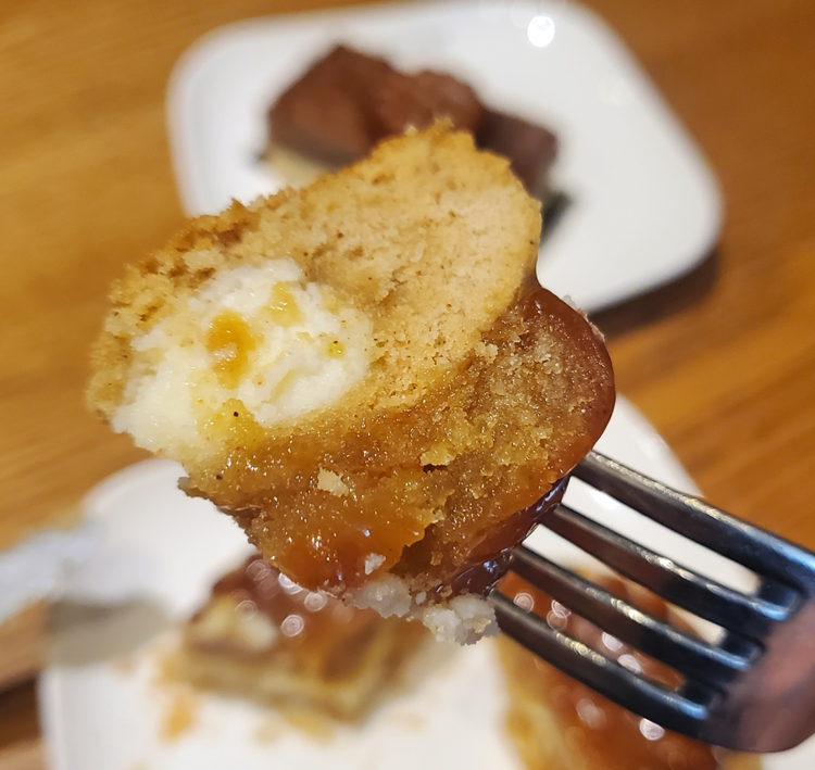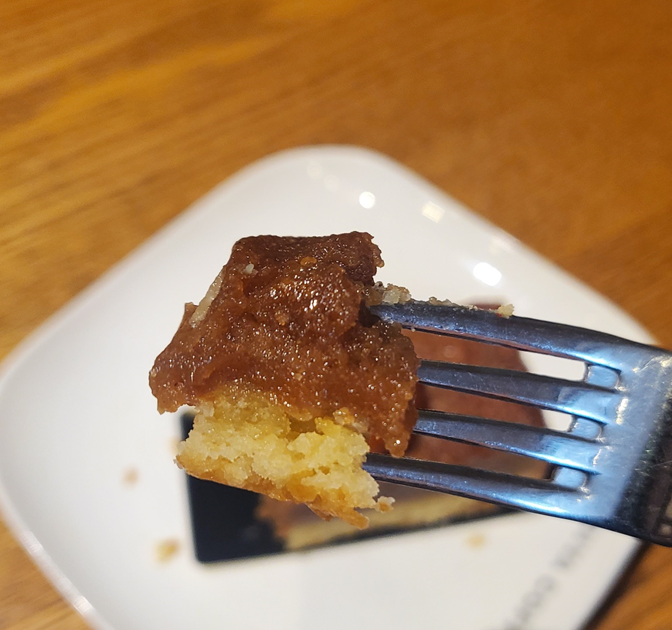살짝 아쉬웠던 것은 너무 데워져서인지 거의 케이크 같은 질감이 되었더라고요!ㅠㅎㅎ 저는 살짝 식감이 있는 것을 기대했어서 그런지 버터바보다는 케이크를 먹은 기분이었어요.ㅎㅎ 그래도 버터향이 나는 크러스트가 담백해서 달달한 약과와 집청과 잘 어울렸고, 미니 약과가 올라가서 금방 물리거나 질리는 맛도 아니었어요.ㅎㅎ 버터가 들어가서 그런지 꽤 배도 든든했고요.ㅎㅎ