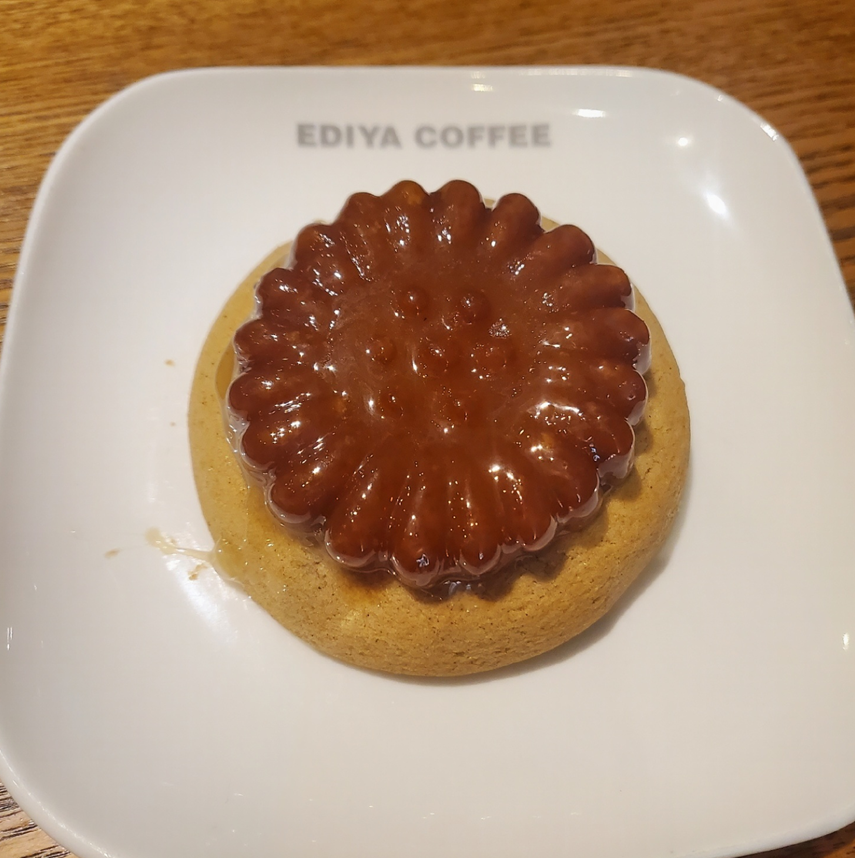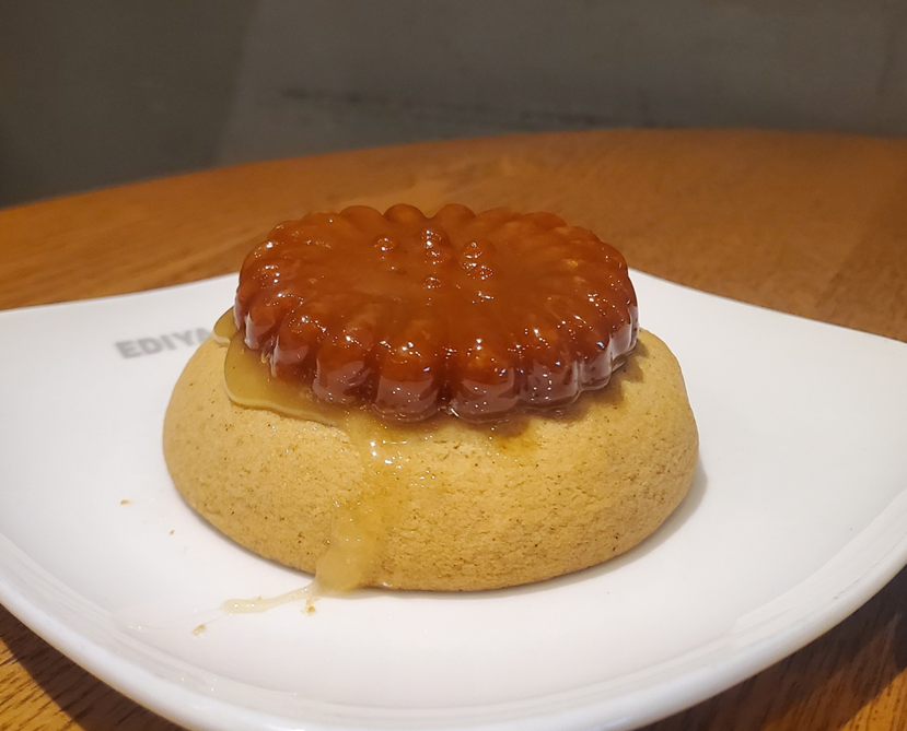 먼저 약과 크림치즈 쿠키예요!ㅎㅎ glazed된 것이 보이시죠?ㅎㅎ 크림치즈가 들어있는 쿠키 위에 약과가 올라가고, 그 위로 조청으로 익히 알고 있는 집청으로 코팅이 되어 있어요!ㅎㅎ 상당히 단맛을 강조하겠다 이야기하는 듯합니다. ㅎㅎ