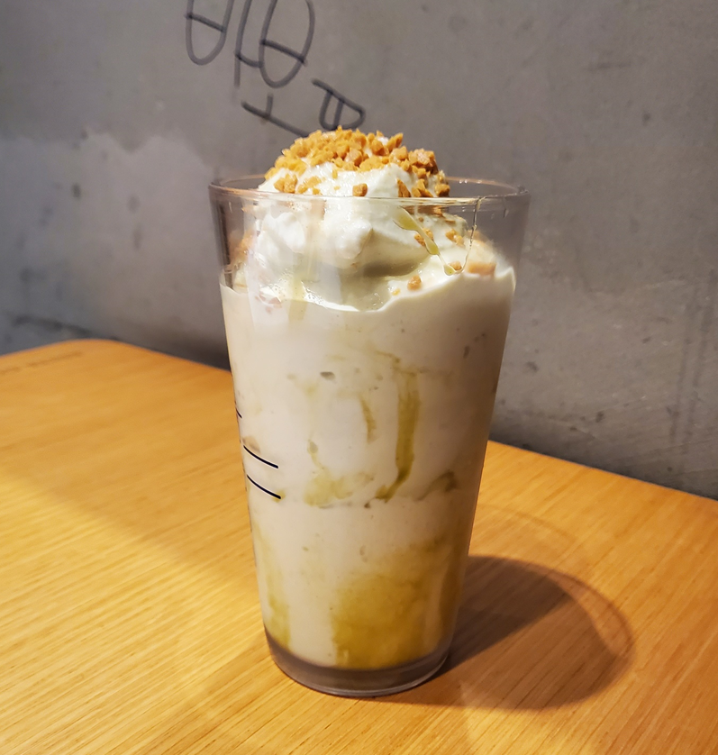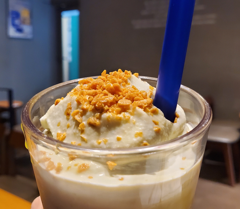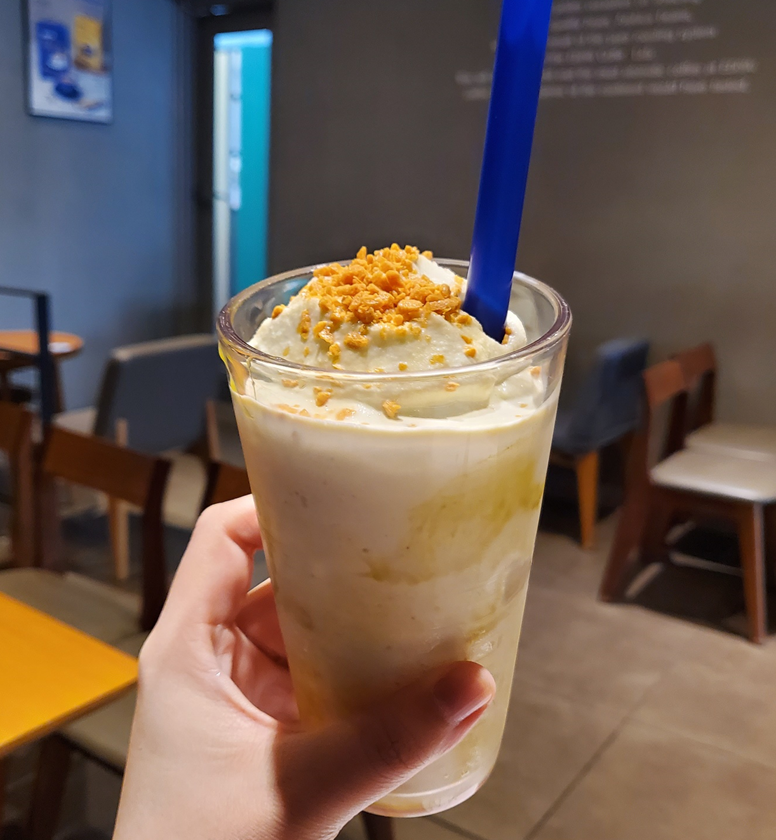 쉐이크 위로는 카라멜 토핑이 올라가 있어요! 저는 땅콩일까 로투스일까 시리얼일까 했는데 카라멜 토핑이네요!ㅎㅎㅎ