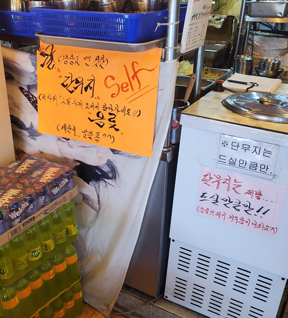 셀프바도 준비되어 있어 필요한 식기 등 챙길 수 있게 되어 있어요.ㅎㅎ 음료는 셀프이지만 계산할 때 말씀 드려야 합니다!ㅎㅎㅎ