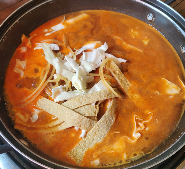 보글보글 열심히 졸여 줍니다.ㅎㅎㅎ 학생들이 일반 떡볶이만 봐서 그런지 많이 신기해하고, 기대하더라고요!ㅎㅎ 떡볶이는 우리가 익히 아는 어릴 적 즐겨 먹던 즉석 떡볶이의 맛이더라고요! ㅎㅎ 보통맛으로 주문했기 때문에 많이 맵지도 않아 먹기 편했고, 외국인 학생들에게 적절한 맛인 듯했습니다. ㅎㅎ