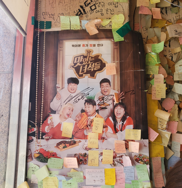 어릴 적 다니던 분식집처럼 포스티잇과 온갖 낙서들이 많아 옛 생각이 많이 났습니다. ㅎㅎ 여전히 오시는 분들이 포스트잇을 붙일 수 있게 테이블마다 포스트잇과 펜이 놓여 있더라고요.ㅎㅎ 저도 하나 남기고 왔습니다.ㅎㅎ