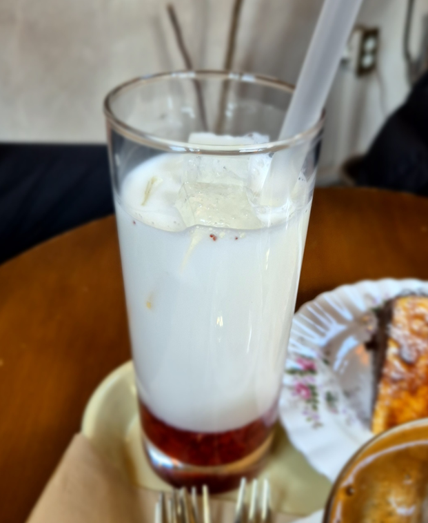 딸기 우유는 밑에 있는 딸기청과 잘 섞어야 합니다. 가라앉아 있어 잘 섞이지 않는다면 빨대로 딸기청 한가득 머금게 됩니다.ㅎㅎ 딸기 과육도 넉넉히 있어 씹는 맛도 좋았고, 달달하니 기분 좋게 마실 수 있는 음료였습니다. ㅎㅎ