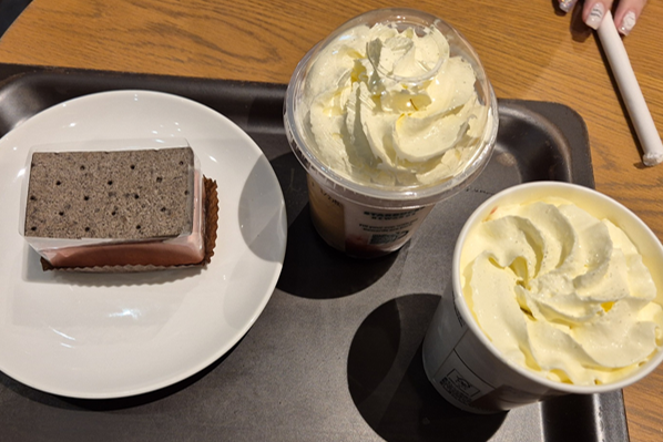 딸기 우유를 얼려서 갈아 놓은 맛이라 설명할 수 있을 것 같아요! 우유와 딸기 퓌레가 섞였기 때문에 딸기 우유 맛과 가장 가깝다고 설명드릴 수 있을 것 같습니다. 마스카포네 크림은 일반적인 크림과 달라 무거우면서 고소하면서 짭조름한 새로운 맛을 느낄 수 있었습니다. 크림이 생각보다 맛있었습니다. ㅎㅎ