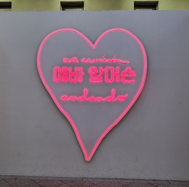 작년 말은 듣는 수업으로 인해서 전시를 정말 많이 봐야 했어요. 그중에서도 동기 선생님이 함께 보자고 해서, 보여주신!! 너무 기억에 남는 전시가 있었습니다. ㅎㅎ 바로 <에바 알머슨 특별전: 에바 알머슨 Andando>입니다. 저도 학부 때 작품을 좀 봤었기 때문에 전시를 자주 보러 다니긴  했지만, 당시 저는 예술학도 병(?)에 심취해 심오하고, 심각한 작품들을 많이 좋아했어요. 그래서 에바 알머슨 작가의 작품을 많이 보진 않았었는데, 기분전환도 돕는 행복한 전시를 오랜만에 보고 와서 기억에 많이 남더라고요.ㅎㅎ 지금은 용산 전쟁기념관에 붙은 저 현수막 그림도 바뀐 걸로 알고 있습니다. ㅎㅎ 제가 조금 늦게 포스팅하게 되었네용.ㅎㅎㅎ
