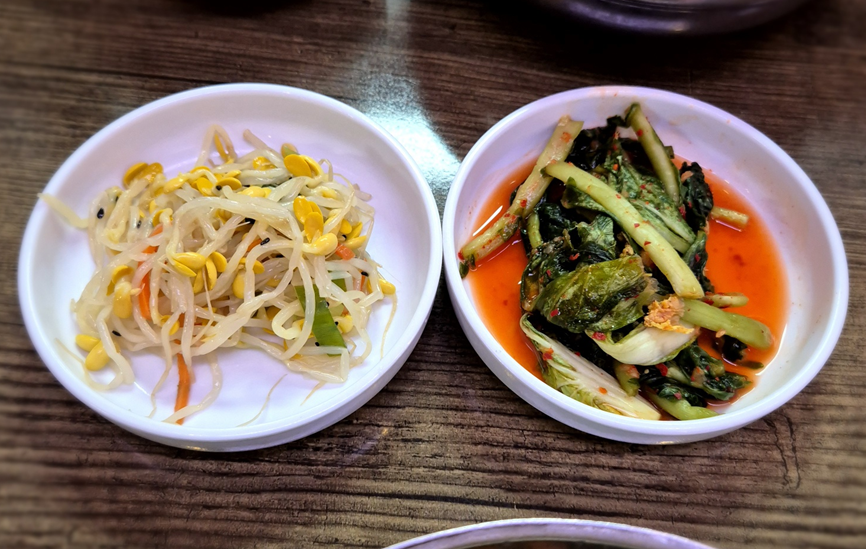 반찬으로 콩나물과 열무김치를 주십니다. 저는 안 익은 김치를 안 좋아하기 때문에 안 먹었는데 같이 가신 분은 열무김치, 콩나물을 모두 비빔밥에 넣어서 같이 비벼 드시더라고요. 그래야 아삭한 식감이 더해져 더 맛있다고 하셨습니다