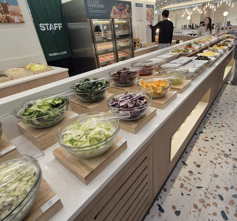 월남쌈, 샤브샤브 재료도 많았고, 사이드 메뉴 많아서 다양하게 고를 수 있었어요.