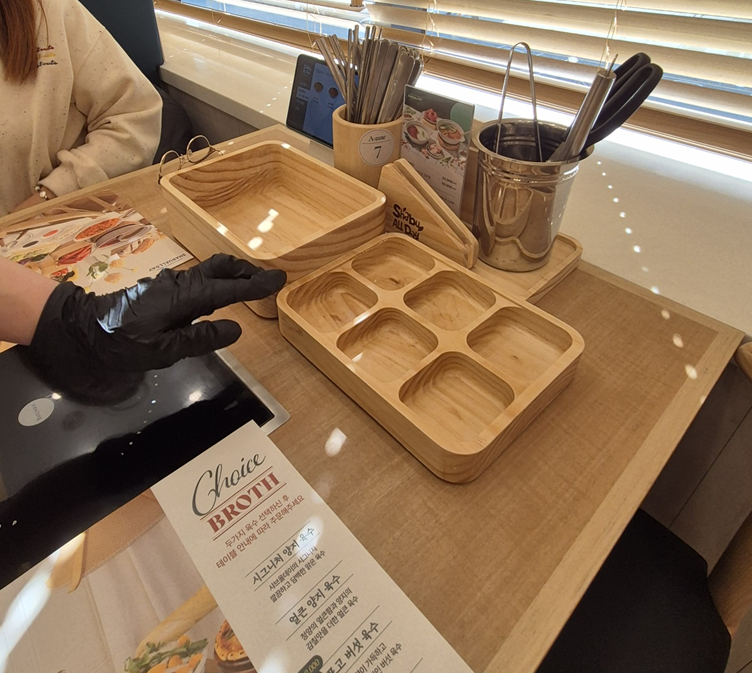 월남쌈도 먹을 수 있어서 채소를 많이 먹고 다양하게 즐길 수 있어서 샤브 올데이가 참 좋더라고요.ㅎㅎ 6구 판은 월남쌈 재료를 담으면 돼요.