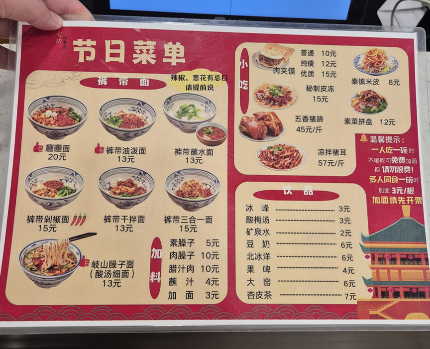 대체로 18~25위안으로 든든하게 먹을 수 있는 식대였습니다. 매장 앞 카운터에서 바로 주문을 하고 안내해 준 자리에 앉으면 됩니다. 저희는 뱡뱡몐만 주문을 했어요.