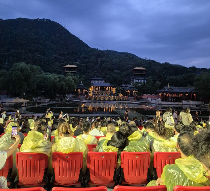 그리고 비가 올 경우 너무 많이 오면 취소되지만 적당히 오면 그대로 공연이 진행돼요. 저희가 깄을 때도 조금씩 비가 내려서 화청지 앞 매점에서 비싸게 우비를 구매했는데 비가 오면 장한가 공연 전에 우비를 배부합니다. 굳이 우비를 안 사도 되니 참고하시면 좋을 것 같아요.