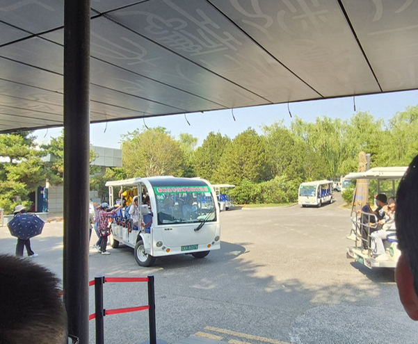 입구에서 나와 걸어가도 되지만 저희는 어머니 무릎이 안 좋으셔서 코끼리 열차라고 불리는 셔틀을 타고 이동했습니다. 4인 기준 약 22위안이었는데 한국돈 4,600원 정도 되니 타고 이동하는 것도 나쁘지 않은 것 같습니다.