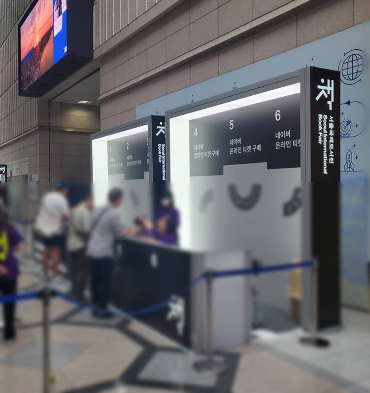 국제도서전이 열리는 A&B1홀은 2호선 삼성역 6번 출구로 나와 코엑스 건물까지 들어가서 전시홀 화살표를 따라가면 되는데 사람이 역시 북적거리고 많아서 찾기 힘들었어요!ㅠ 입구에는 현장 발권과 사전 등록 부스가 있기 때문에 발권 상황에 따라 맞춰 가면 됩니다. ㅎㅎ