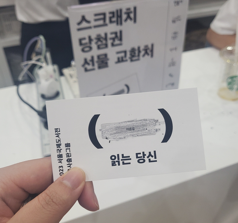계산하면서 복권을 받았는데 복잡해서 뭐라 말씀하시는 지 모르겠더라고요..ㅎㅎ 그래서 긁고 직원분께 물어봤더니 제 복권은 꽝이더라고요..ㅎㅎㅎ 그 자리에서 같이 사인해 주시는 작가 분도 계셨는데 저는 안 됐었나 봅니다..ㅎㅎㅎㅎ