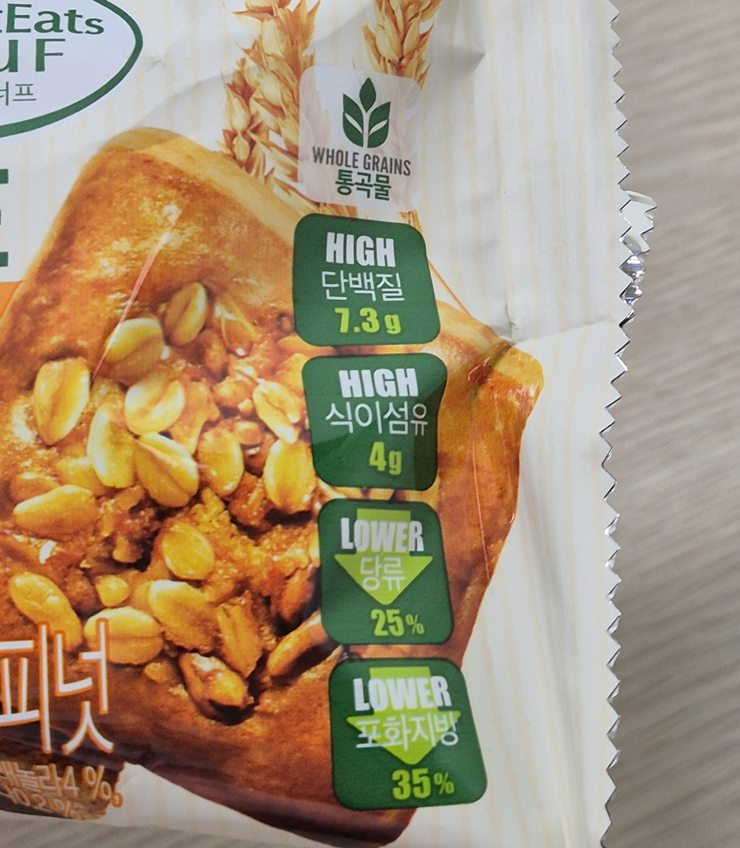 바나나&피넛맛은 통곡물에 단백질 7.3g, 식이섬유 4g, 당류 25% 줄이고 포화지방도 35% 줄였다고 합니다.