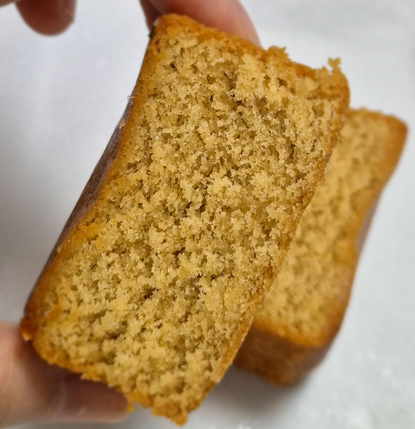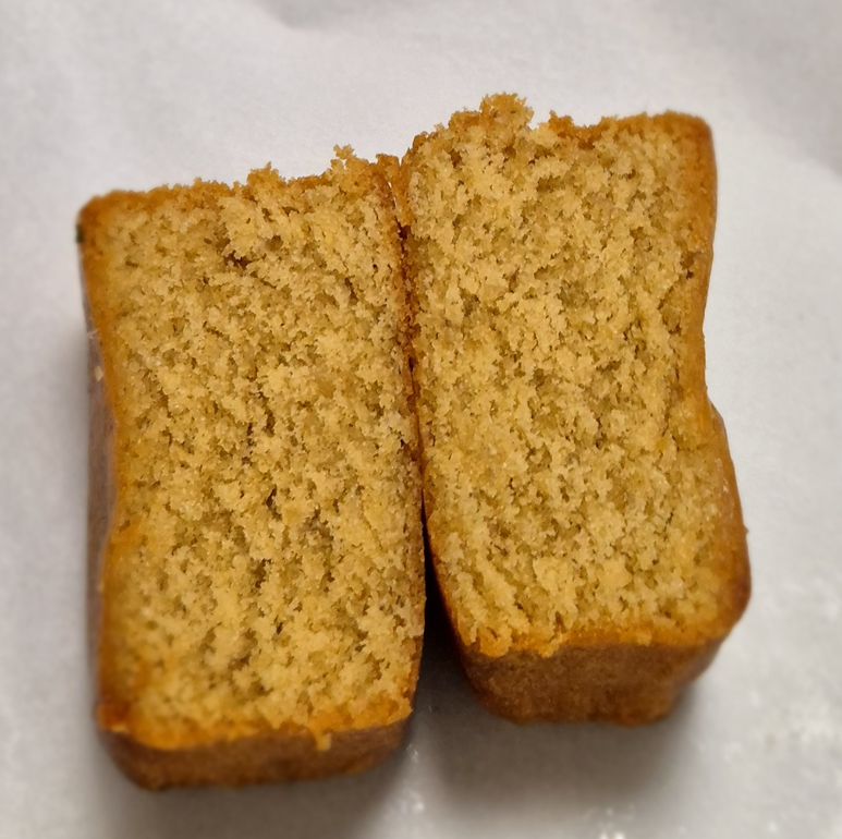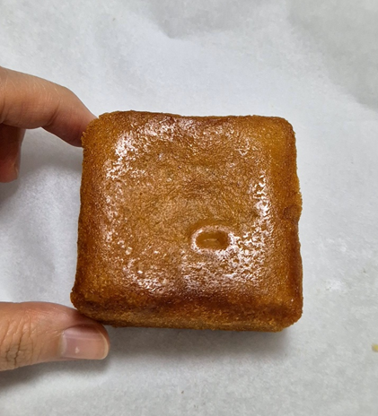 반을 잘라도 아무것도 안 들어가 있는 플레인 빵입니다.ㅎㅎ 파운드케이크나 마들렌 같은 식감, 질감이 비슷한 빵이에요.