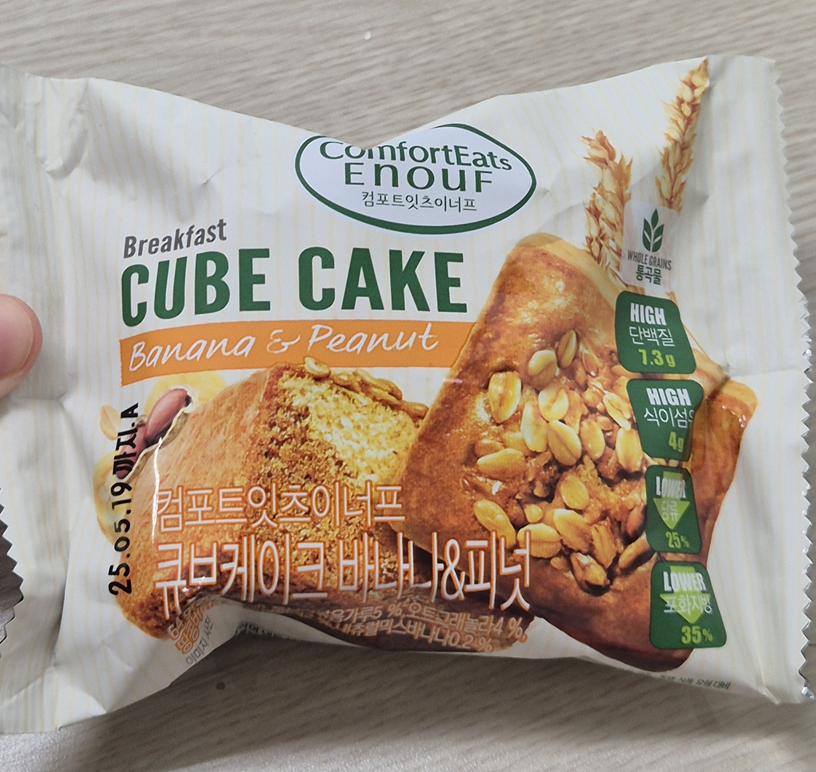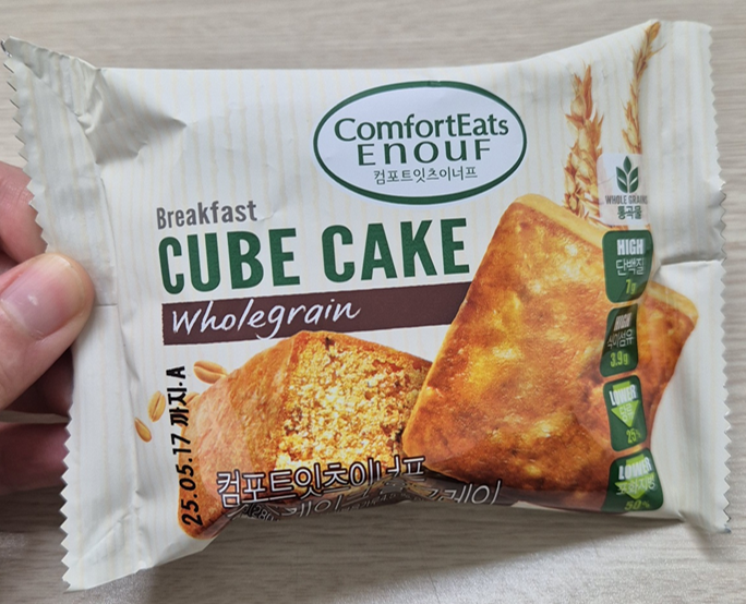 며칠 전 출근 때 아침을 못 먹어서 구매했던 컴포트이츠이너프 큐브케이크입니다. 맛있어서 다른 맛도 구매하고 후기를 쓰게 되었어요.ㅎㅎ