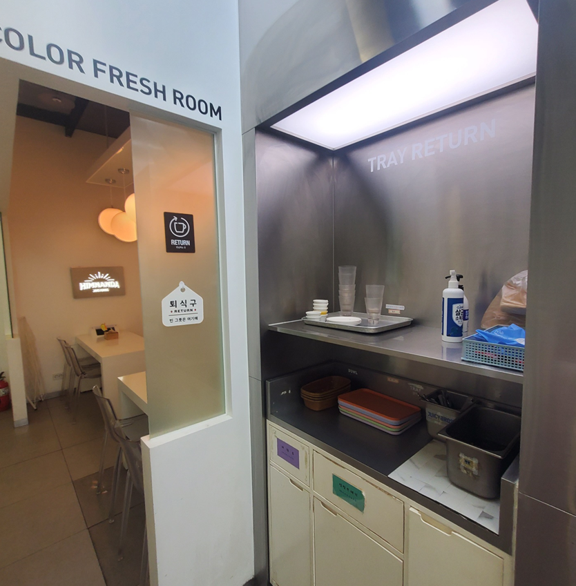 다 먹고 난 후에는 중간에 퇴식구가 있기 때문에 공간별 분리대로 잘 정리해서 버려주면 됩니다. ㅎㅎ
