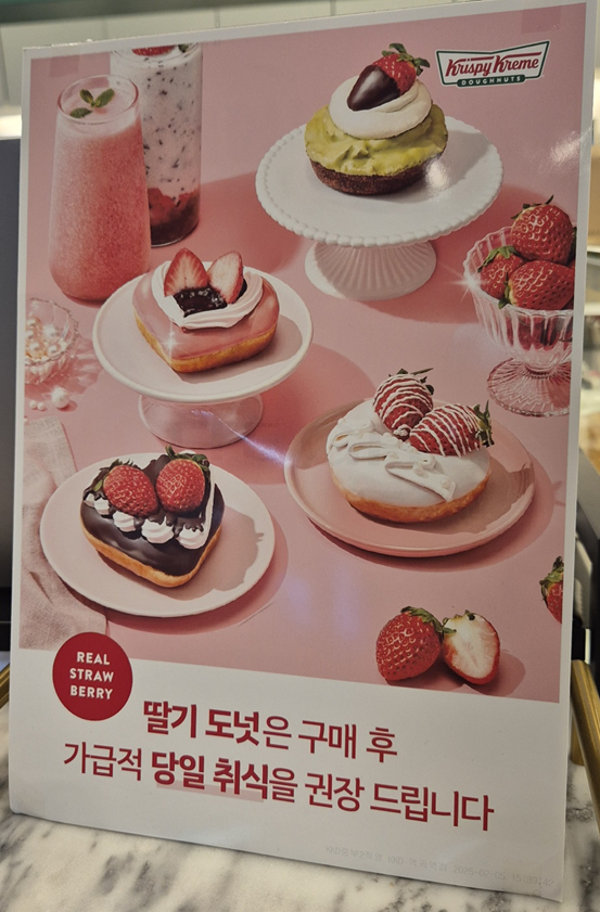 딸기가 들어간 도넛이라 그런지 당일 취식하라는 문구가 많이 보였습니다. ㅎㅎ 새로 나온 음료도 맛있어 보이네요!