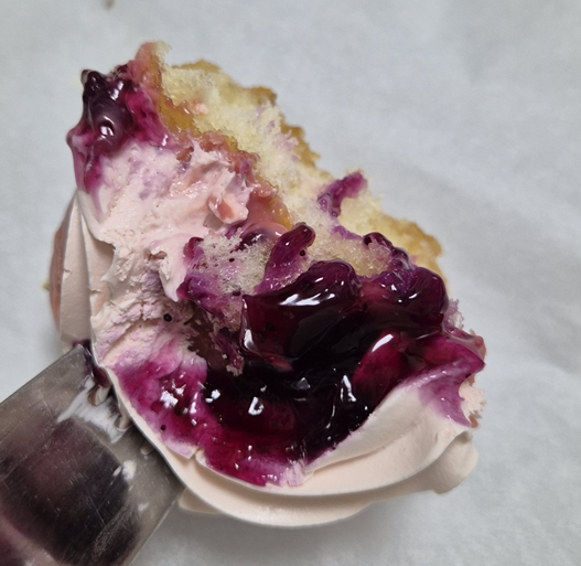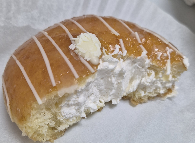 아이싱이 두툼하게 커버되어 있고 생각보다 크림이 단단했습니다. 개인적으로는 퓨어화이트 러브 이 도넛이 제 입에 가장 잘 맞았는데 강한 단맛보다 요거트의 상큼함이 조금 더 가미된 맛이 좋았습니다.ㅎㅎ