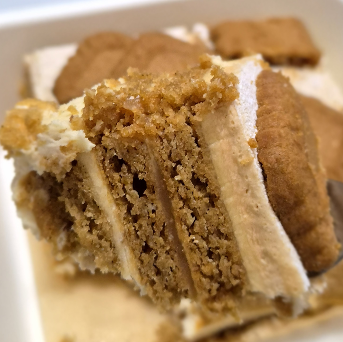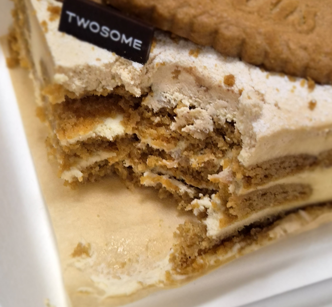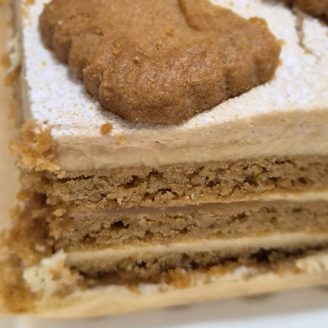 로투스 비스코프 아박은 마스카포네 생크림 사이에 로투스 쿠키와 카라멜을 켜켜이 쌓아 올린 케이크입니다.