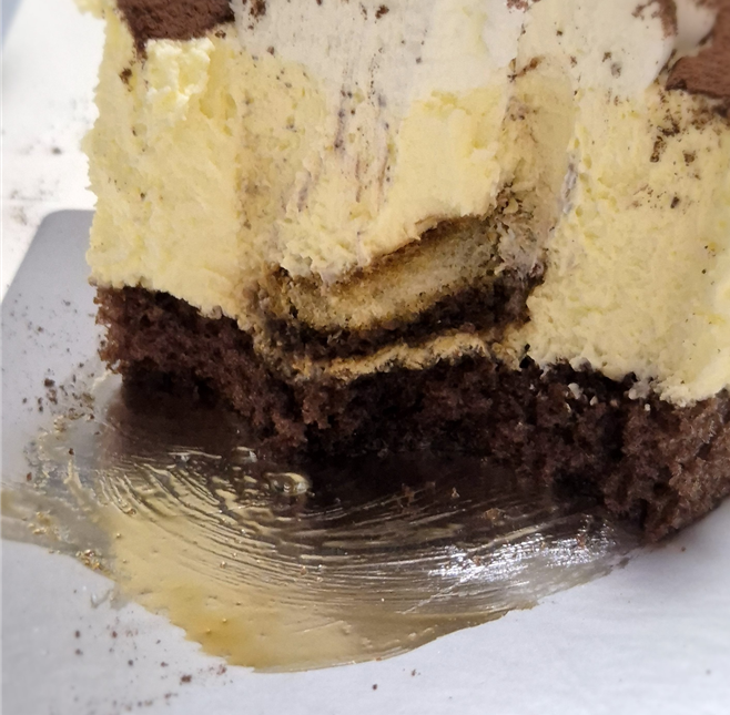 포크로 한 술 떠 보니 핑거 쿠키의 흔적이 보이시죠?ㅎㅎ 저는 조금 당황하긴 했는데 너무 귀엽게 하나 들어가 있네요.ㅎㅎ 사실 뭐 맛이 크게 좌우될 정도로 영향이 크진 않습니다. 너무 미미해서요..ㅎㅎㅎ 마스카포네 크림 치즈의 비율에 비해 핑거 쿠키가 너무 귀여운 것 같아요.ㅎㅎ